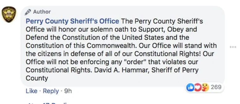 Cumberland County Sheriff Ronny Anderson made a popular Facebook post that assured citizens that the Sheriff office would not enforce any order that violates the constitution.